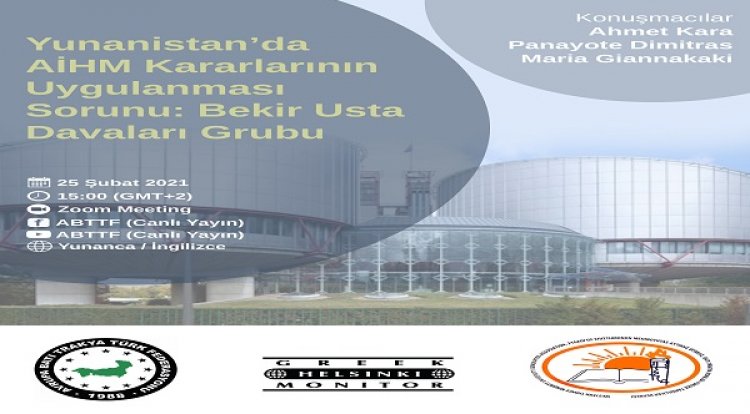“Yunanistan’da AİHM Kararlarının Uygulanması Sorunu: Bekir Usta ve Diğerleri Dava Grubu” webinarı 25 Şubat’ta!