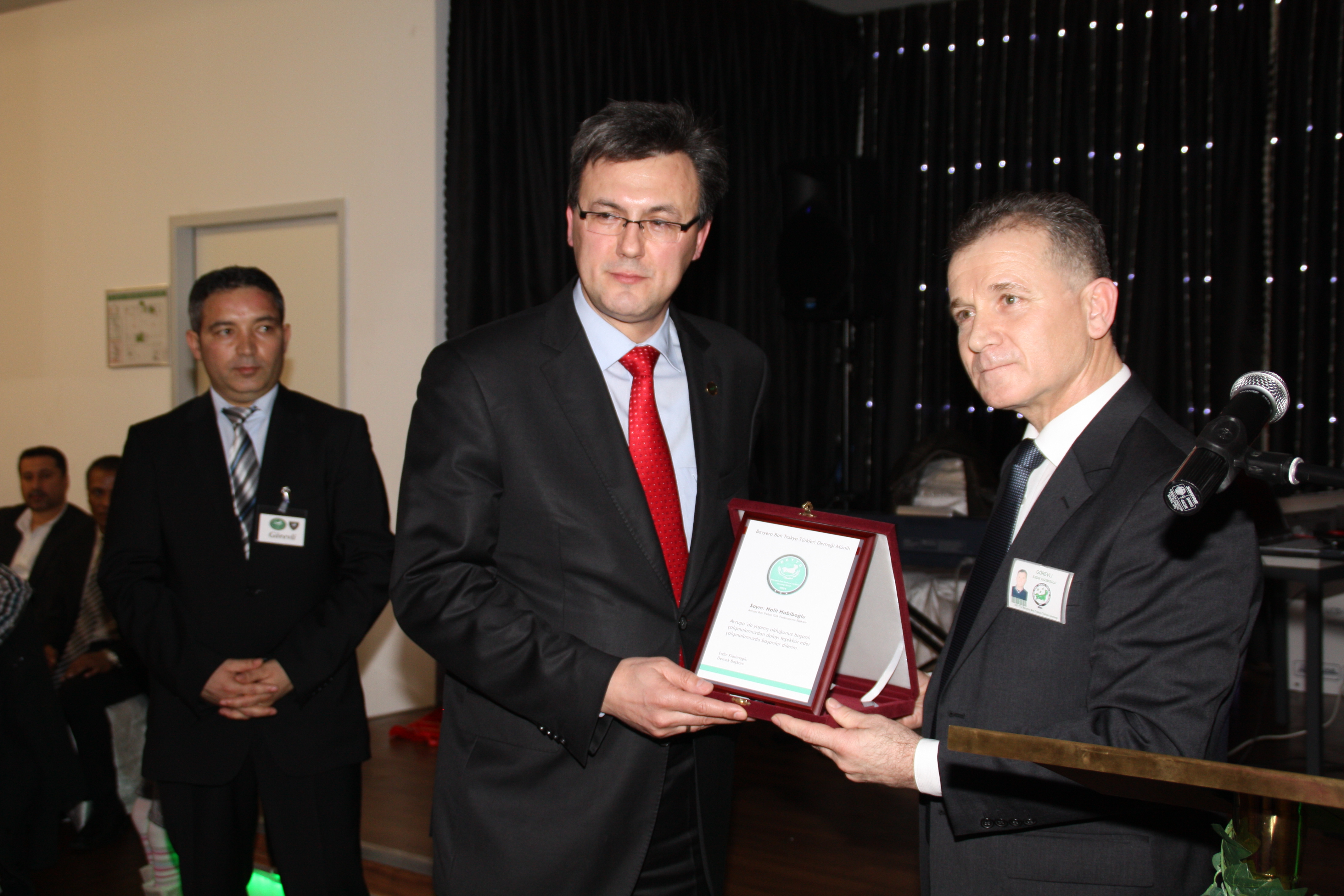 Münih Engelliler Derneği Başkanı Cengiz Hocazade’nin de kısa bir selamlama konuşması yaptığı gecede protokol konuşmalarının ardından ABTTF Başkanı Halit Habipoğlu’na ve Münih Engelliler Derneği Başkanı Cengiz Hocazade’ye yaptıkları çalışmalar dolayısı ile bir plaket verildi. Gecede sahne alan Faruk Ka’ya ise katılımı dolayısı ile bir teşekkür plaketi sunuldu.