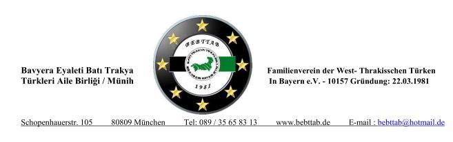 Bavyera Eyaleti Batı Trakya Türkleri Aile Birliği Münih Derneği'nin 16 Kasım 2013 tarihinde düzenleyeceği Kültür ve Aile Gecesi'ne tüm Batı Trakya Türkleri ve dostlarını davet eder, bu güzel gecemizde sizleri aramızda görmekten mutluluk duyarız.