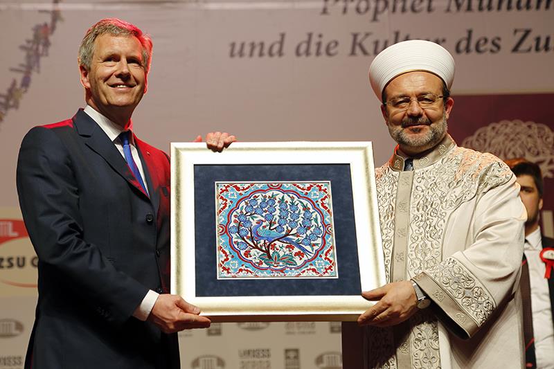Konferansın ardından Diyanet İşleri Başkanı Eski Almanya Cumurbaşkanı’na hediye takdim etti. Programa katılım gösteren tüm çatı kuruluşları sahneye davet edildi, temsilcilere birer gül takdim edildi. Birlik ve beraberliğin hakim olduğu program, Mahir Zain konseri ile son buldu.