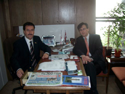 Halit Habipoğlu önce Bursa Milletvekili Mustafa Dündar’a milletvekili seçilmesinden dolayı bir tebrik ziyaretinde bulunarak, kendisine başarılar diledi.