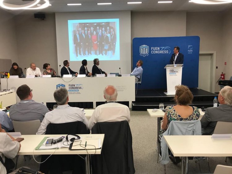 FUEN 2019 Kongresi 13 Haziran öğleden sonra FUEN Başkanı Loránt Vincze’nin açılış konuşması ile resmen başladı. Bu yılki kongrede bir ilk olarak FUEN ödülü takdim edilirken ulusal azınlıkların korunmasına katkı sağlayan isimlere verilecek FUEN ödülünün ilk sahibi Federal Alman Hükümeti Göçmen Sorunları ve Etnik Azınlıklar Eski Temsilcisi Harmut Koschyk oldu. Ardından FUEN’in sabık başkanları ile halihazırdaki başkanının katılımıyla düzenlenen panel oturumunda azınlık haklarının korunması ve geliştirilmesinde FUEN’in 70 yıllık mücadelesi değerlendirildi. Akşam gerçekleştirilen galada FUEN 70. yaşını kutladı
